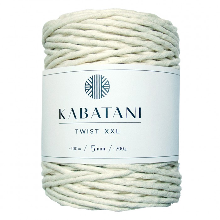The KABATANI MACRAME STRING - TWIST XXL is made of 100% recycled cotton. It is 5 mm thick and comes in several colors. The yarn used for production gives the string a rustic look. The cord is produced from several dozen fibres of recycled cotton yarn, it has a strong twist, thanks to which it does not unravel. It is wound on a cardboard coil. The coil makes it easier to portion the string in macramé projects, because it allows you to fix it on a stick and unwind it freely.