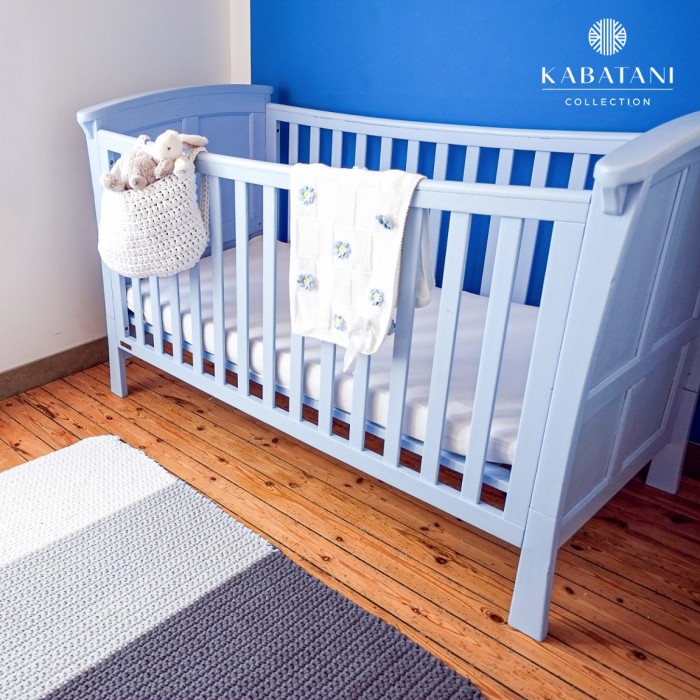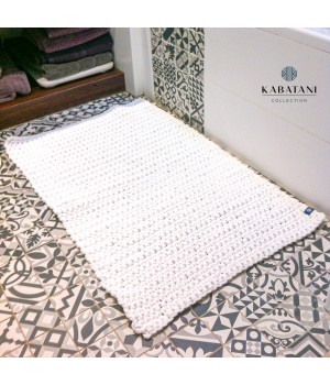 Cotton crochet rug handmade from recycled cotton (5 mm KABATANI braided cord) in a small studio in Bordeaux. It measures 40 x 60 cm. It is ready to be shipped.