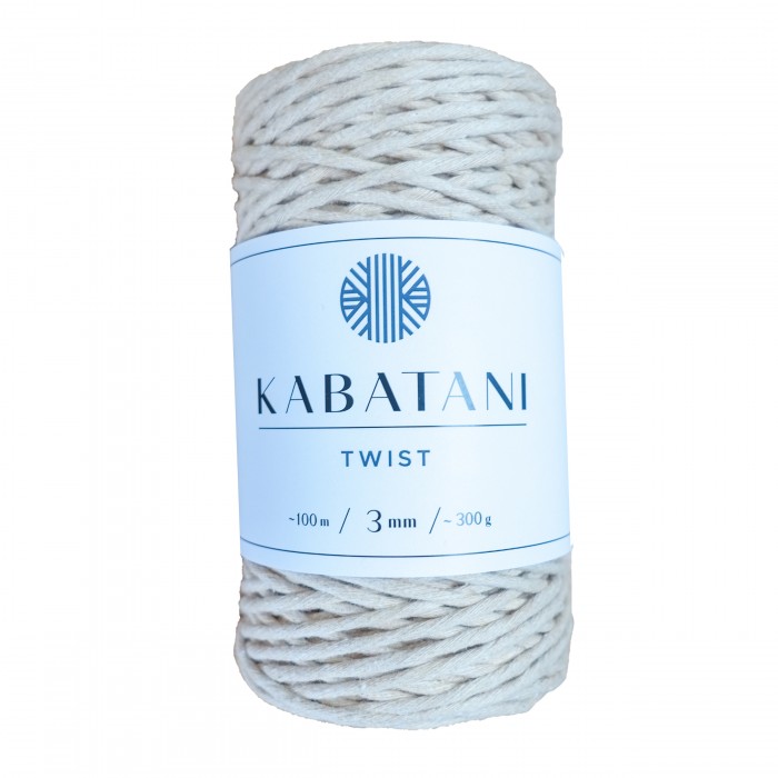The KABATANI MACRAME STRING - TWIST is made of 100% cotton (recycled yearns). It is 3 mm thick and comes in several colors. The yarn used for production gives the string a rustic look. The cord is loosely twisted from 60 strings. It is easy to comb. It is very pleasant to work with.